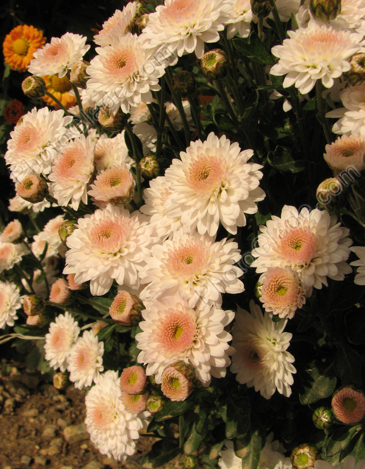 | | Хризантемы относятся к семейству Сложноцветных, это значит что каждое соцветие состоит из группы простых цветков. Существуют сорта, у которых в корзинке около тысячи язычковых и трубчатых цветков. Все сорта хризантем, существующие на сегодняшний день, можно условно разделить на две группы: крупно- и мелкоцветковые. У мелкоцветковых, как правило, гораздо больше соцветий на кусте, размер которых колеблется от 2 до 9 см в диаметре. Именно такие хризантемы представлены на фото. |