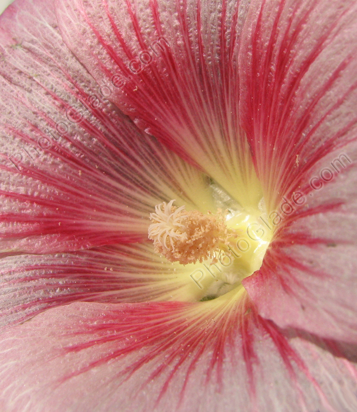 Фото: Цветок розовой мальвы с алыми прожилками.